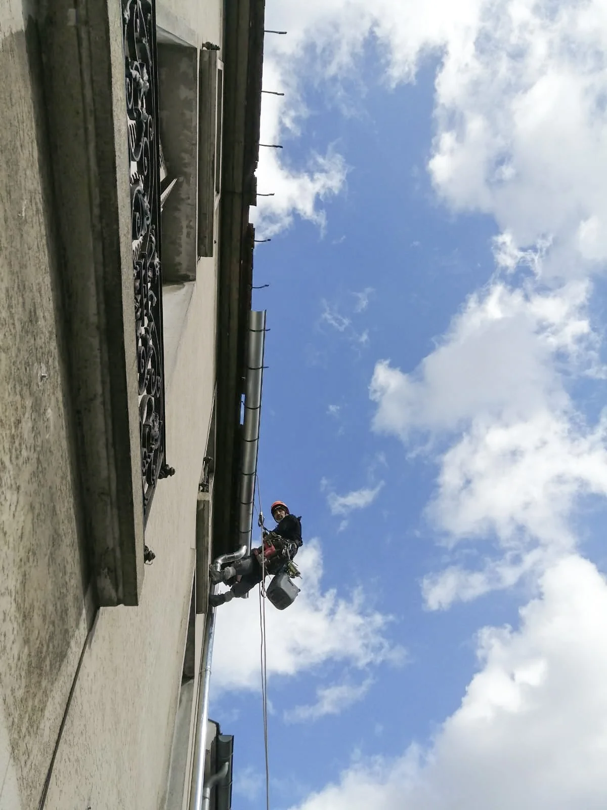 Nos plombiers cordistes interviennent en hauteur pour l’entretien, le remplacement et la réparation des descentes pluviales en PVC, zinc ou fonte.